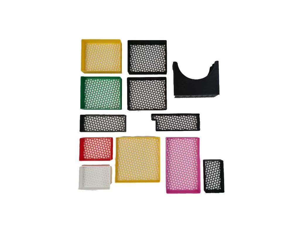 - Výrobky tiskneme převážně z PLA a PETG na tiskárnách Prusa a Bambu Lab.