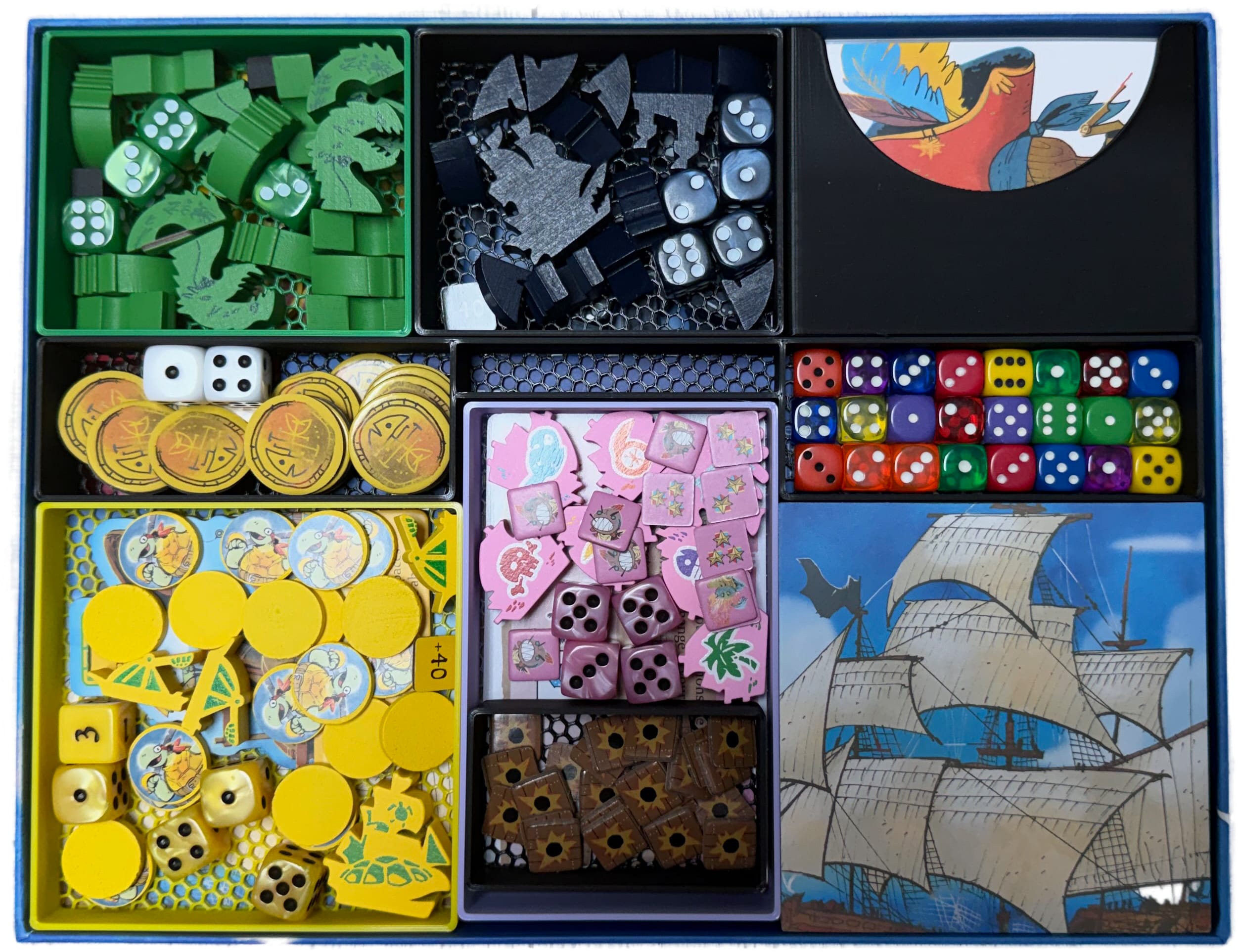 3D printed insert of our fan Ondra for board game Ahoy (2022) included expansions Fang & Fortune (2025), Rivals & Renegades (2025) and mini expansion Treasure Pack (2025).