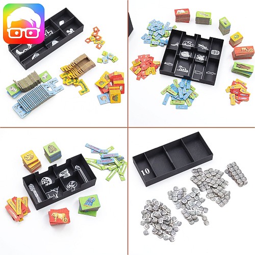 - 1–3) 6 inner organizers for cardboard tokens and dice