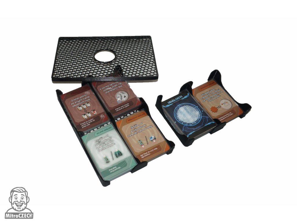 - 1x box pro vybrané karty Událostí při hraní hry, kde jedna část je dobírací část a druhá je pro zahrané karty událostí.