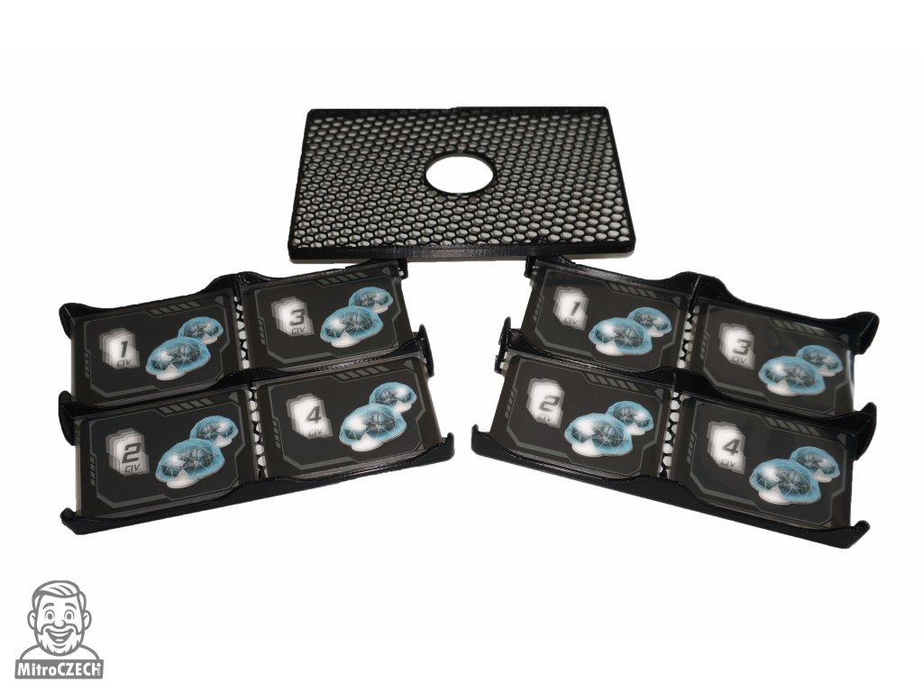 - 2x box pro karty Civilizací. Jedna je pro uložení všech karet a druhá jen pro vybrané karty při hře.