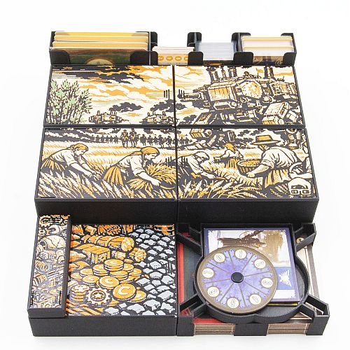 3D printed insert by Italian designer Andrea for the board game Scythe (2015) and its expansions Invaders from Afar (2016), The Wind Gambit (2017), Encounters (2018) and all PROMO cards.