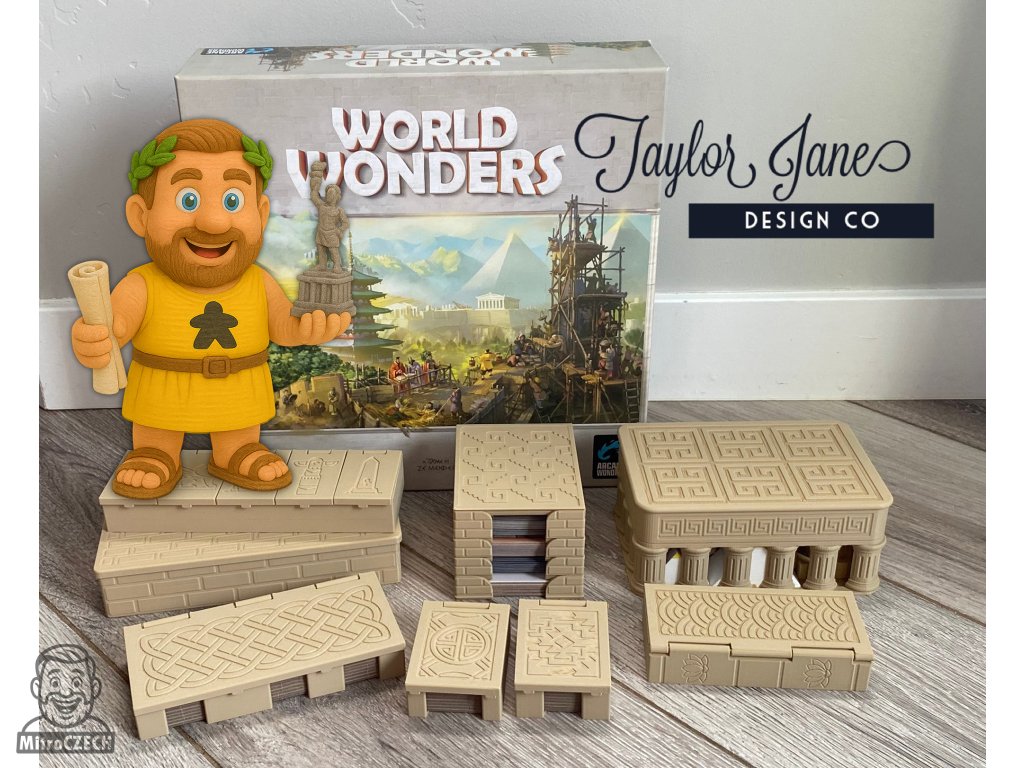 Elevate your game experience with this thematic 3D printed insert for World Wonders (2023), compatible with the Mundo – Wonders Pack (2024) expansion.