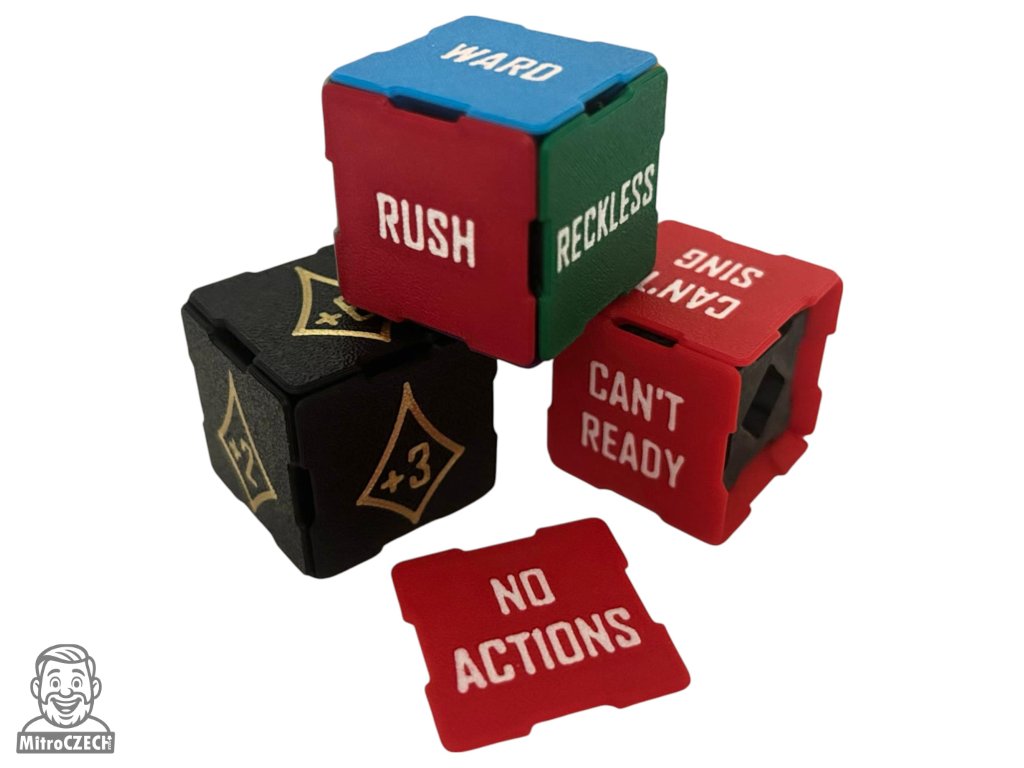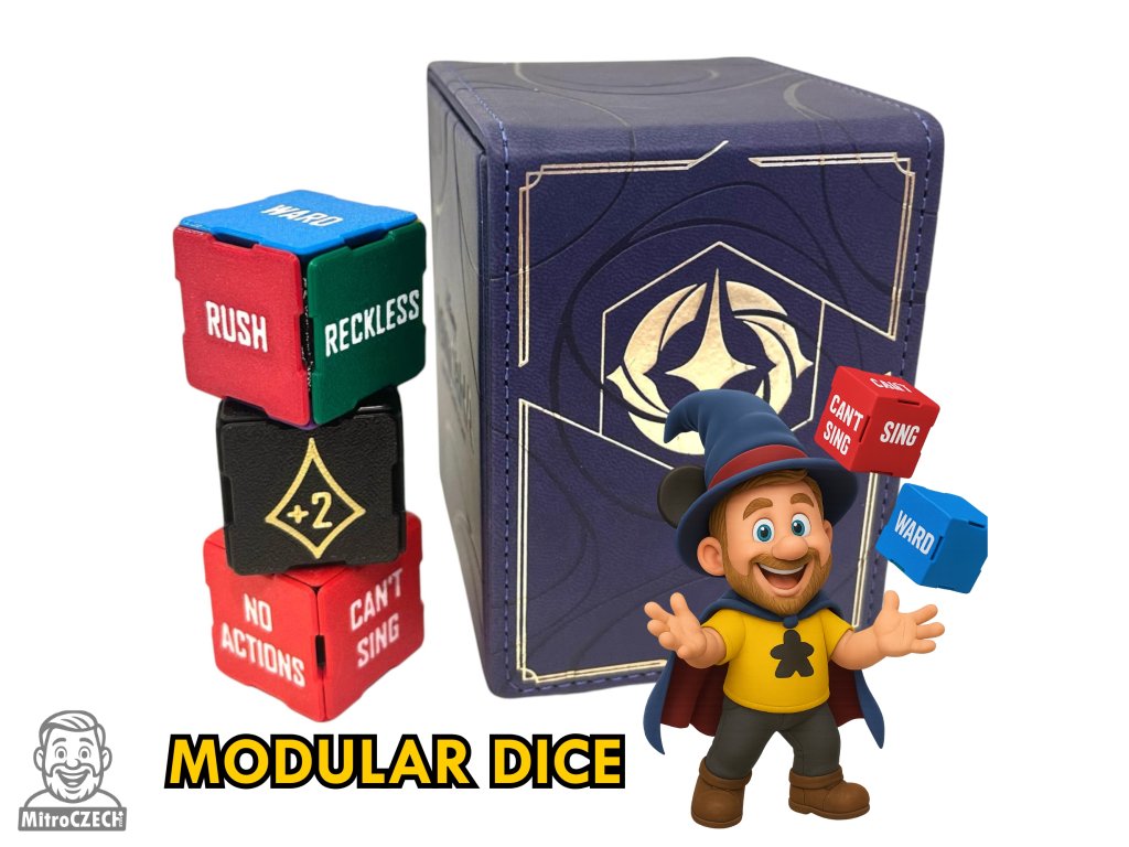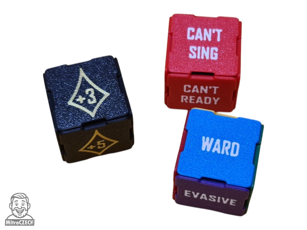 Speed up and streamline your Lorcana game with this set of 3 modular dice designed especially for **Disney Lorcana TCG** players! 🎲✨ Each die measures **32×32×32 mm** and features fully interchangeable sides – so you can easily customize them to match your needs or game colors.