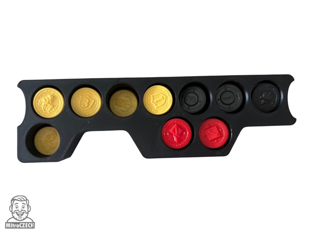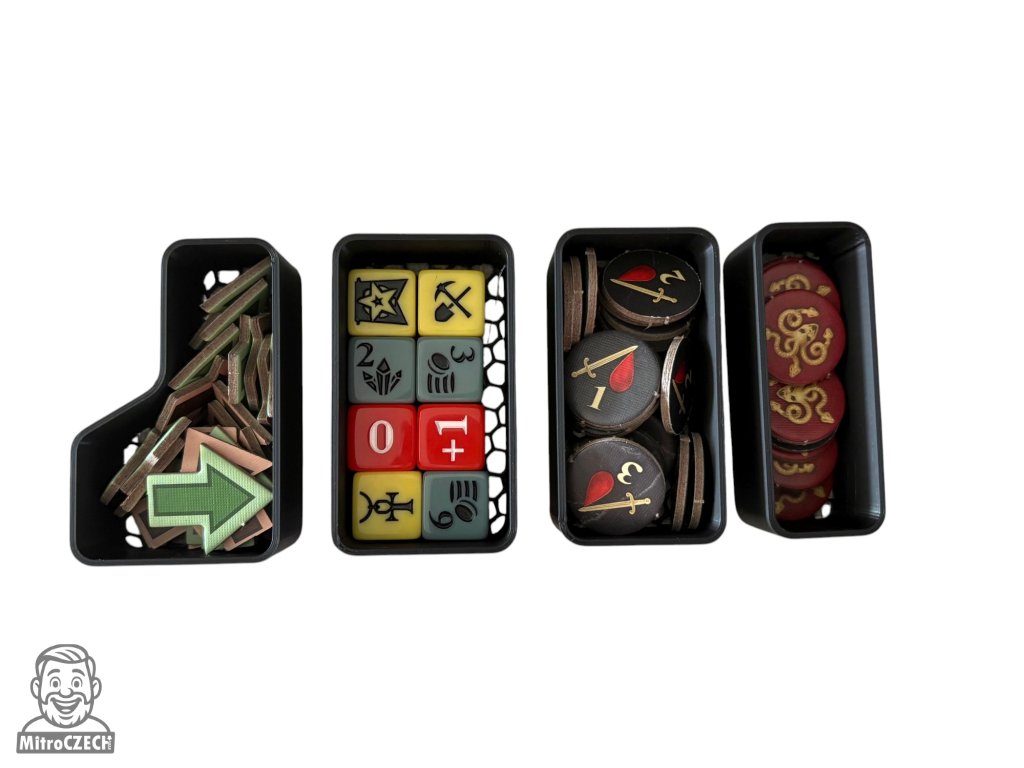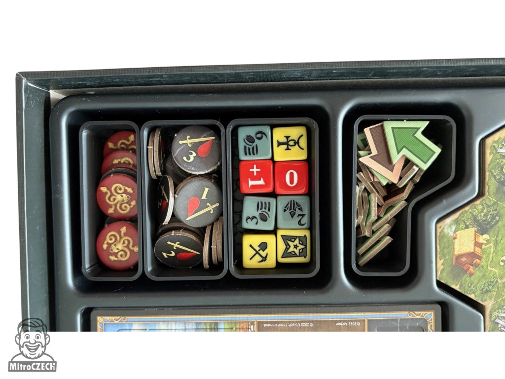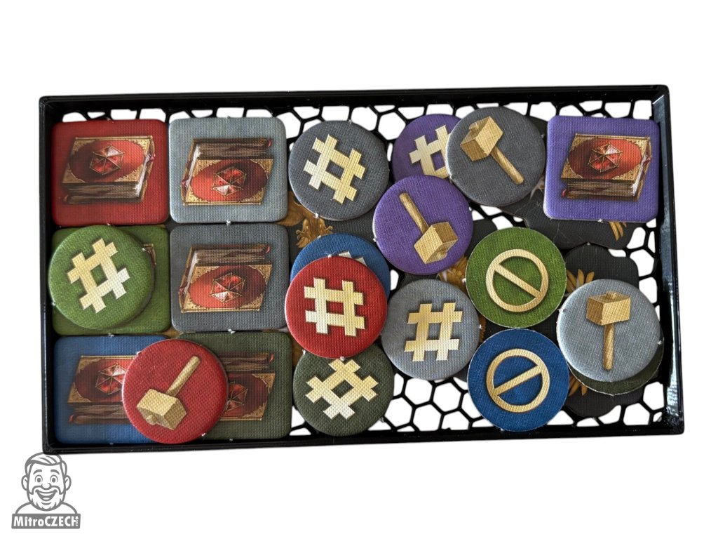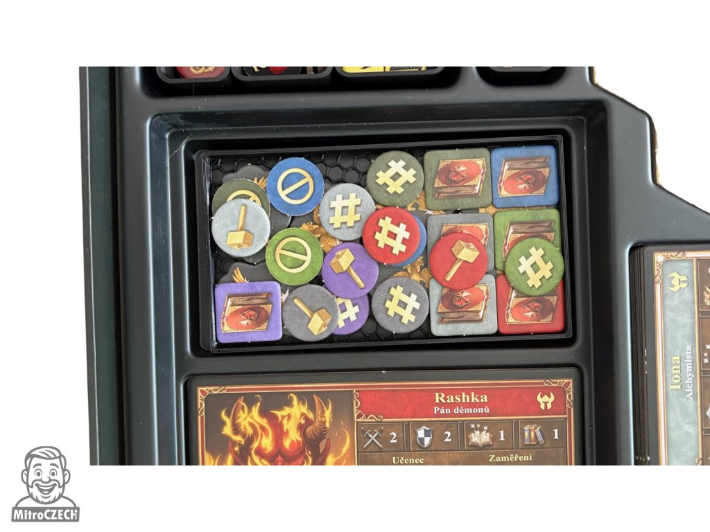 Konečne niekoho napadlo využiť hluché miesta v bigboxovom inserte. Mince a suroviny síce nepoužívame, ale minimálne využijeme praktické krabičky na ďaľšie žetóny. Palec hore.