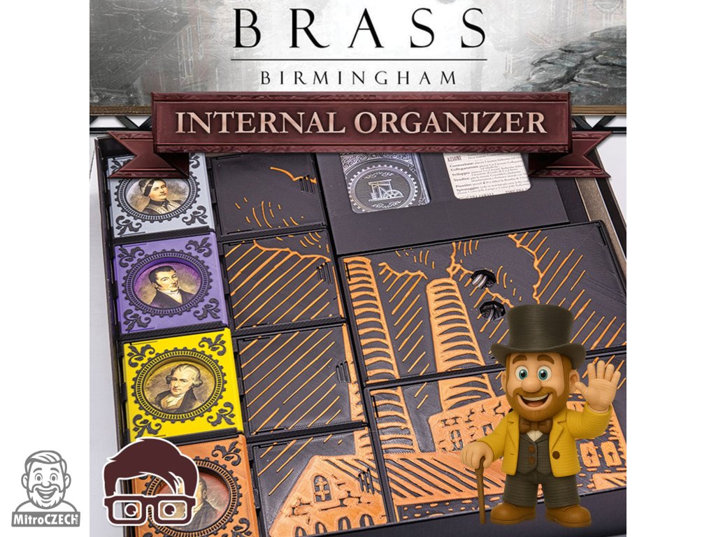 3D tištěný insert italského designéra Andrea pro deskovou hru Brass: Birmingham (2018).