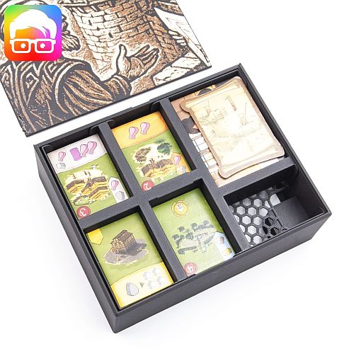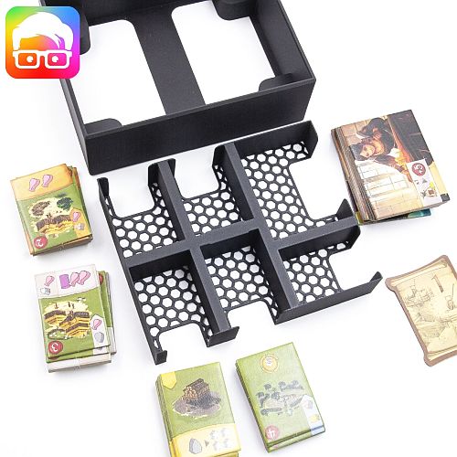 Insert je navržen tak, aby uspořádal všechny součásti základní hry uvnitř originální krabice. Díky zámkovým víčkům můžete krabici bez obav umístit vodorovně nebo svisle a z krabice nebude nic vypadávat. Insert podporuje obalené karty.