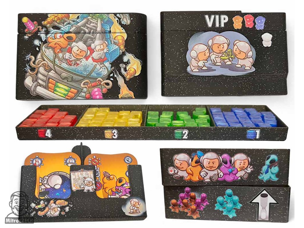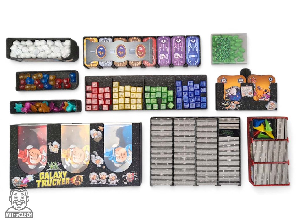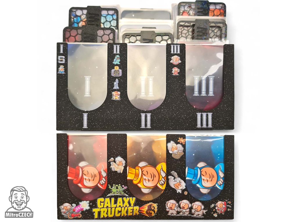 3D tištěný insert italského designéra Andrea pro deskovou hru Galaxy Trucker: Druhé, vytuněné vydání (2021) + Jedeme dál! (2022) a Do What?! (2025).