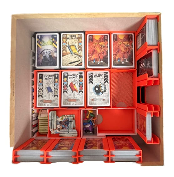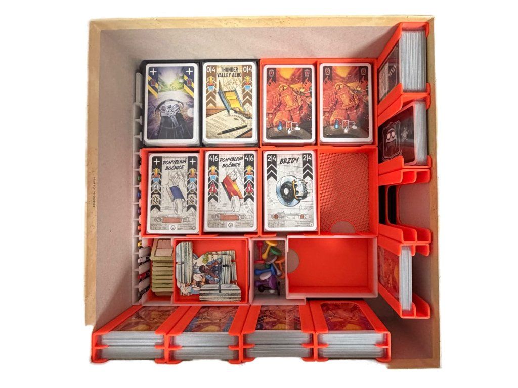 Insert je navržen tak, aby výrazně zrychlil přípravu i úklid hry a udržel pořádek v krabici. Všechny komponenty mají své místo a lze je bezpečně skladovat i ve vertikální poloze bez rizika rozsypání.