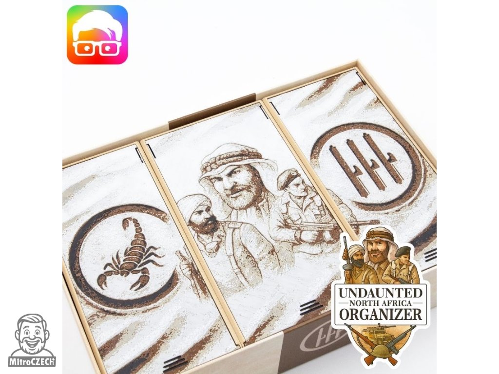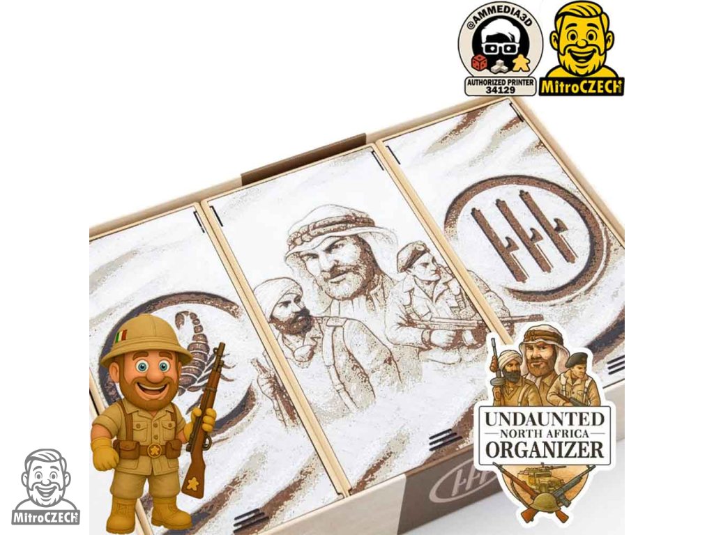 3D tištěný insert italského designéra Andrea pro deskovou hru Odhodlaní: Severní Afrika (2018).