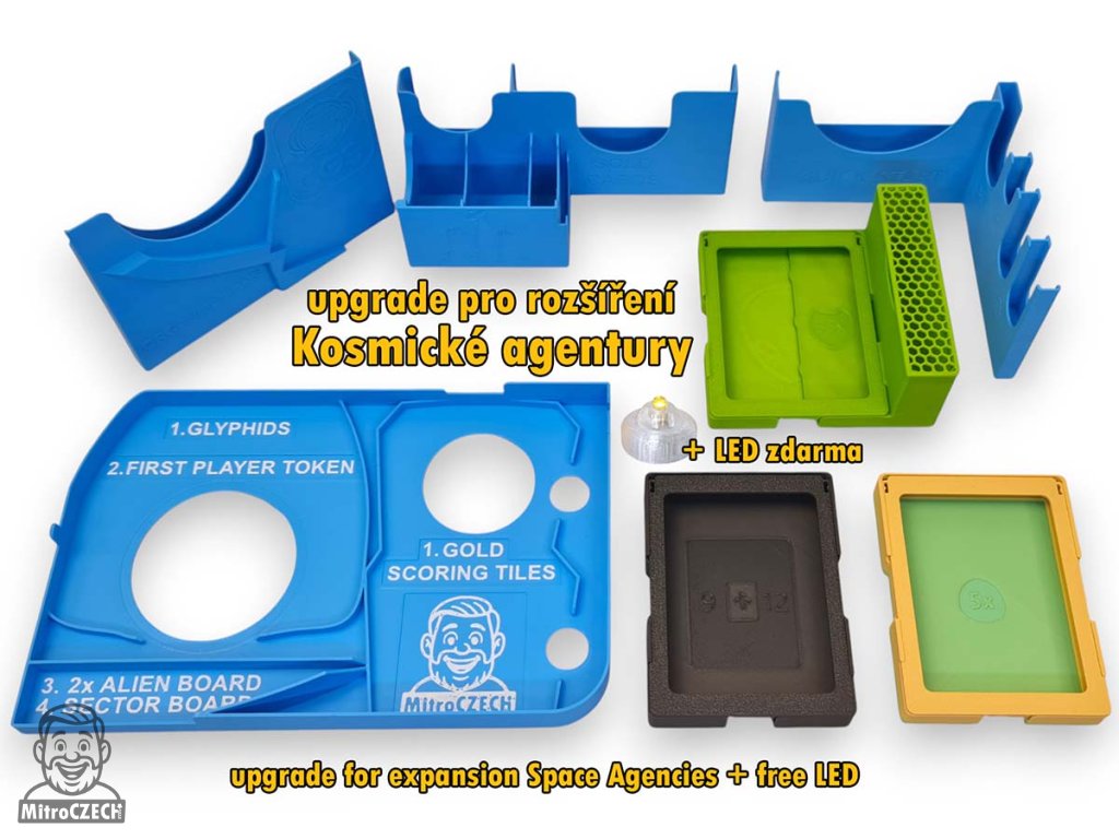 Základní insert byl konzultován s autorem hry Tomášem Holkem a tak jsme již byli připravení pro úpravu na rozšíření Kosmické agentury. Vše tak krásně sedí a zapadá jen s minimálními úpravami a možností dokoupit pouze nové díly pro rozšíření.