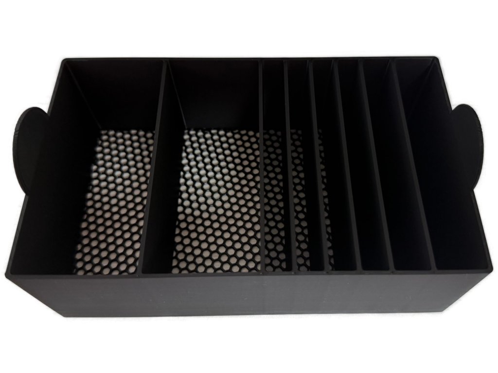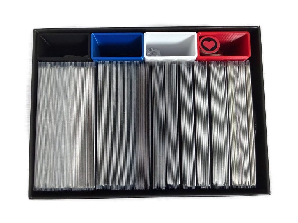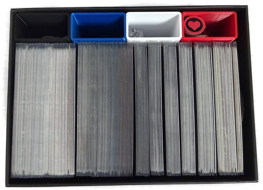 Insert je navržen tak, aby výrazně zrychlil přípravu i úklid hry a udržel pořádek ve všech rozšířeních. Všechny komponenty mají své místo a lze je bezpečně skladovat i ve vertikální poloze bez rizika rozsypání.