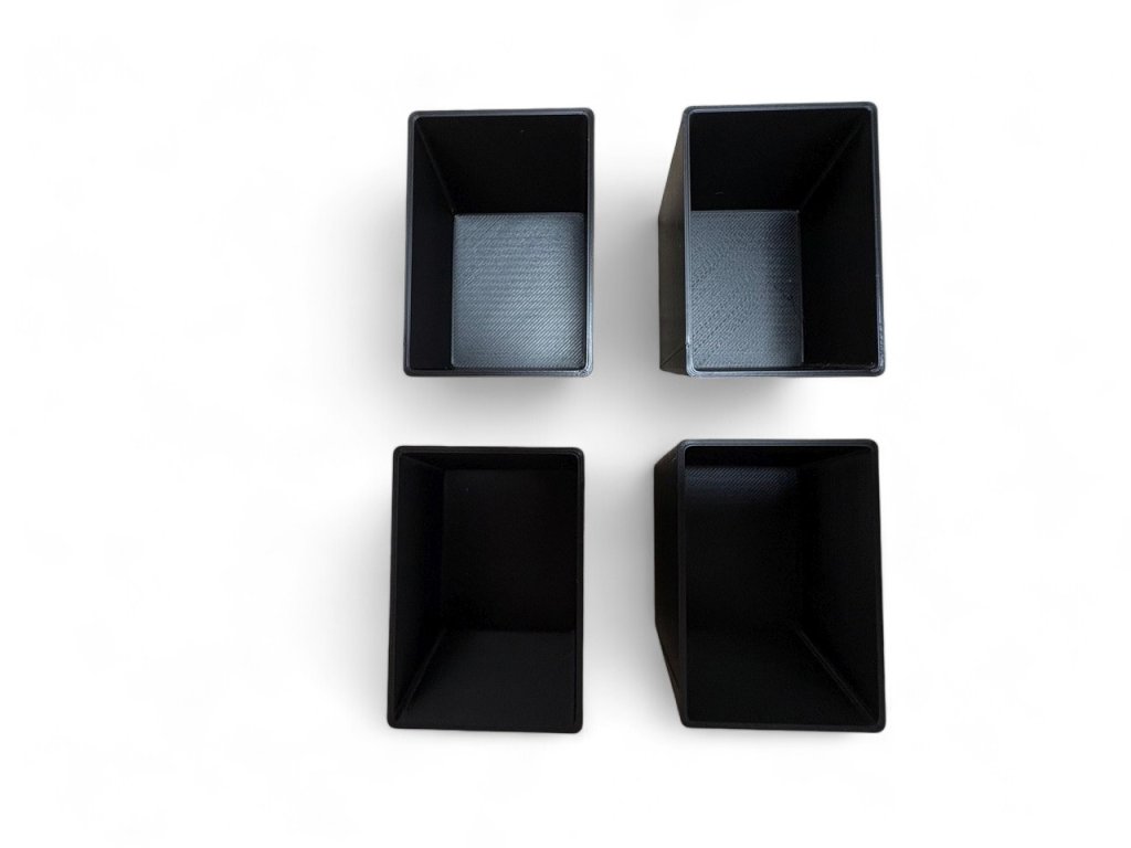 - Výrobky tiskneme převážně z PLA a PETG na tiskárnách Prusa a Bambu Lab.