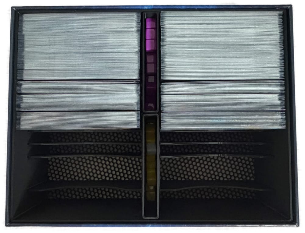 Insert je navržen tak, aby výrazně zrychlil přípravu i úklid hry a udržel pořádek ve všech rozšířeních. Všechny komponenty mají své místo a lze je bezpečně skladovat i ve vertikální poloze bez rizika rozsypání.