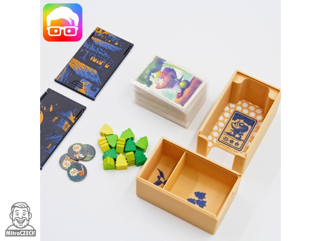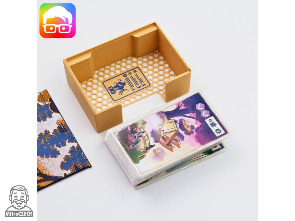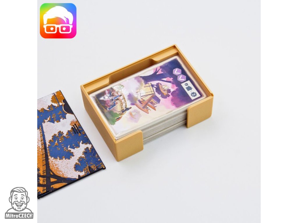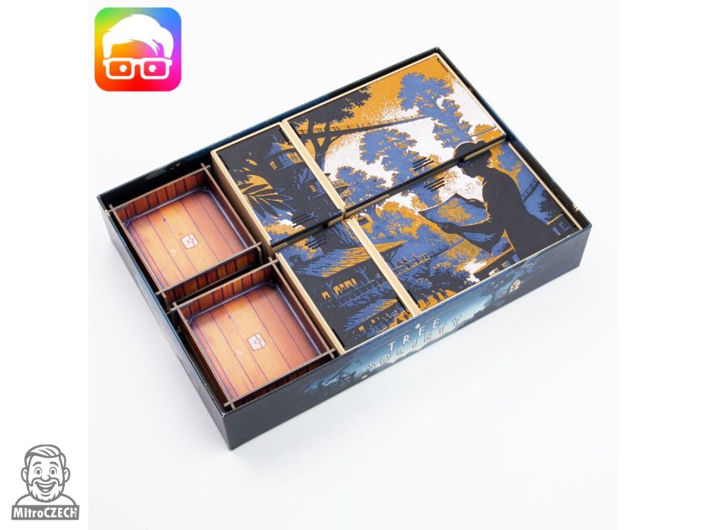 Insert je navržený tak, aby uspořádal všechny součásti základní hry uvnitř originální krabice. Díky zámkovým víčkům můžete krabici bez obav umístit vodorovně nebo svisle a z krabice nebude nic vypadávat. Insert podporuje obalené karty.