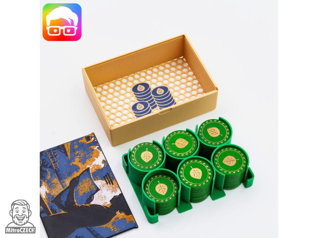 - Velký box na žetony s víkem + vkládací pořadač na žetony