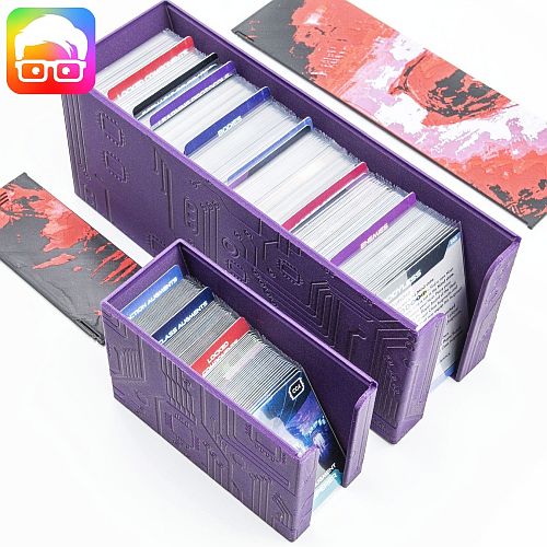 Insert je navržen tak, aby uspořádal všechny součásti základní hry uvnitř originální krabice. Díky zámkovým víčkům můžete krabici bez obav umístit vodorovně nebo svisle a z krabice nebude nic vypadávat. Insert podporuje obalené karty.