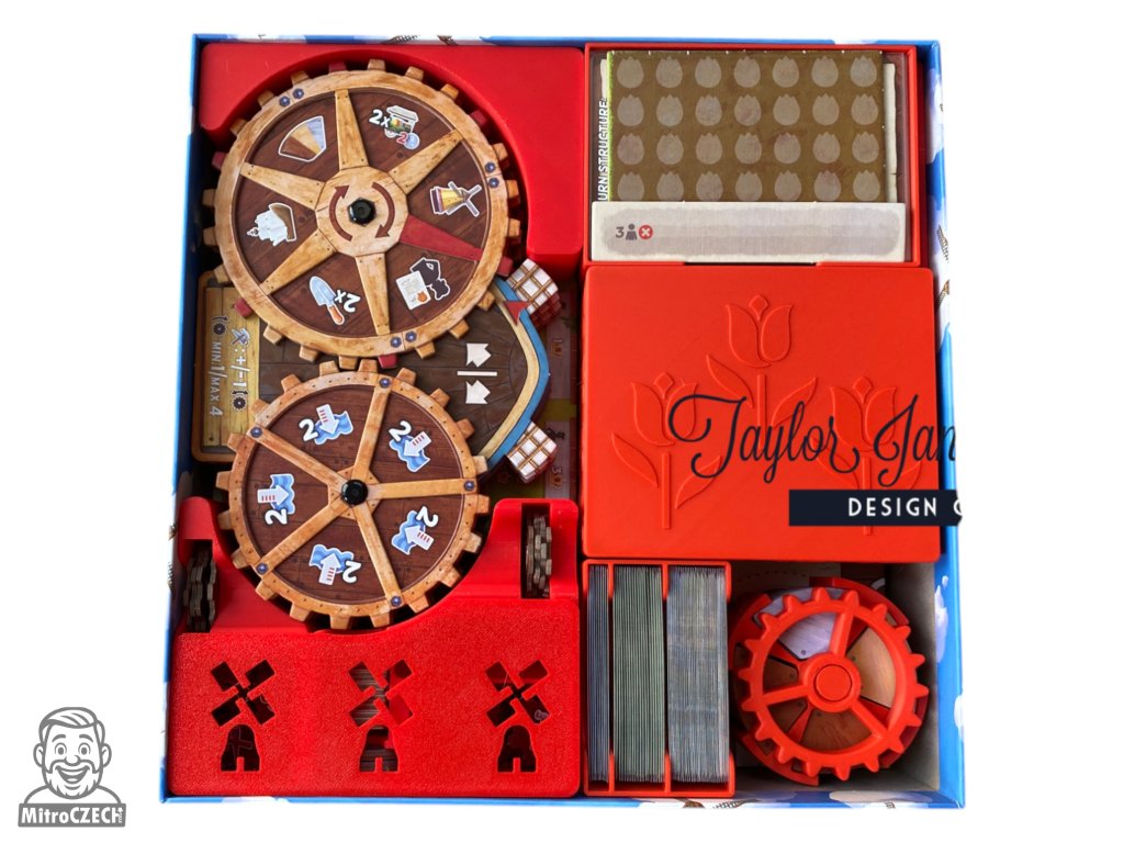 Tento luxusní insert přináší originální víko s ozubeným mechanismem, otáčející se větrné mlýny, magnety a jako vždy je vhodný pro vertikální skladování i karty v obalech.