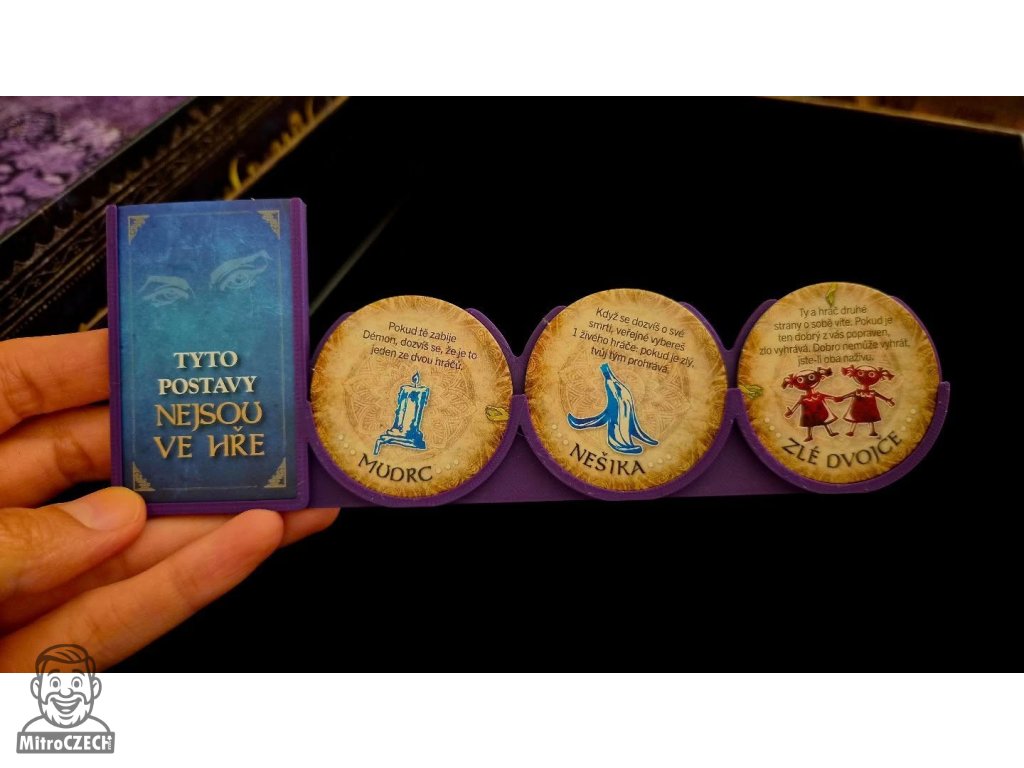 Praktický pořadač na blafy pro vypravěče, který výrazně usnadňuje manipulaci s žetony během hry. Umožňuje si v klidu připravit žetony blafů a následně je elegantně ukázat hráči – bez nutnosti držet žetony zvlášť a složitě s nimi manipulovat. Díky promyšleným drážkám žetony bezpečně drží na místě a nevypadnou ani při překlopení pořadače.