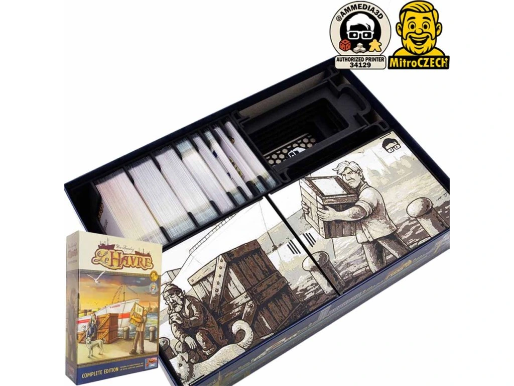 3D tištěný insert italského designéra Andrey pro deskovou hru Le Havre (2008).