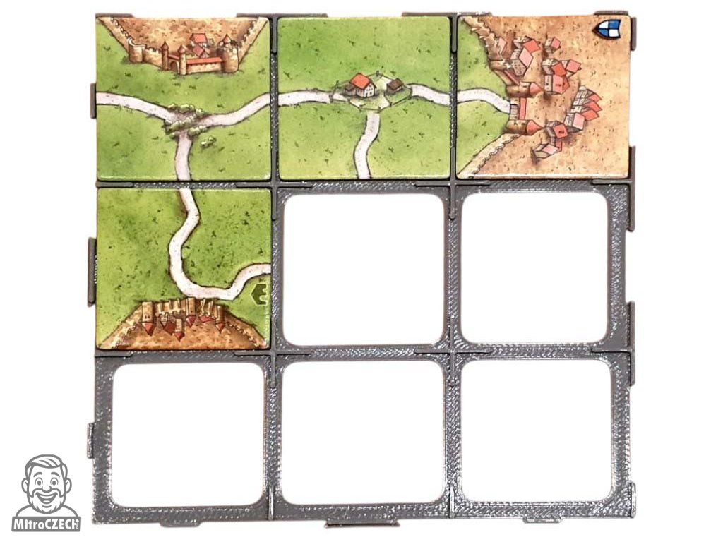 Mřížky na dílky pro deskové hry: Karak (2017), Carcassonne (2001) a také pro dílky ze hry Ostrov Skye (2015).