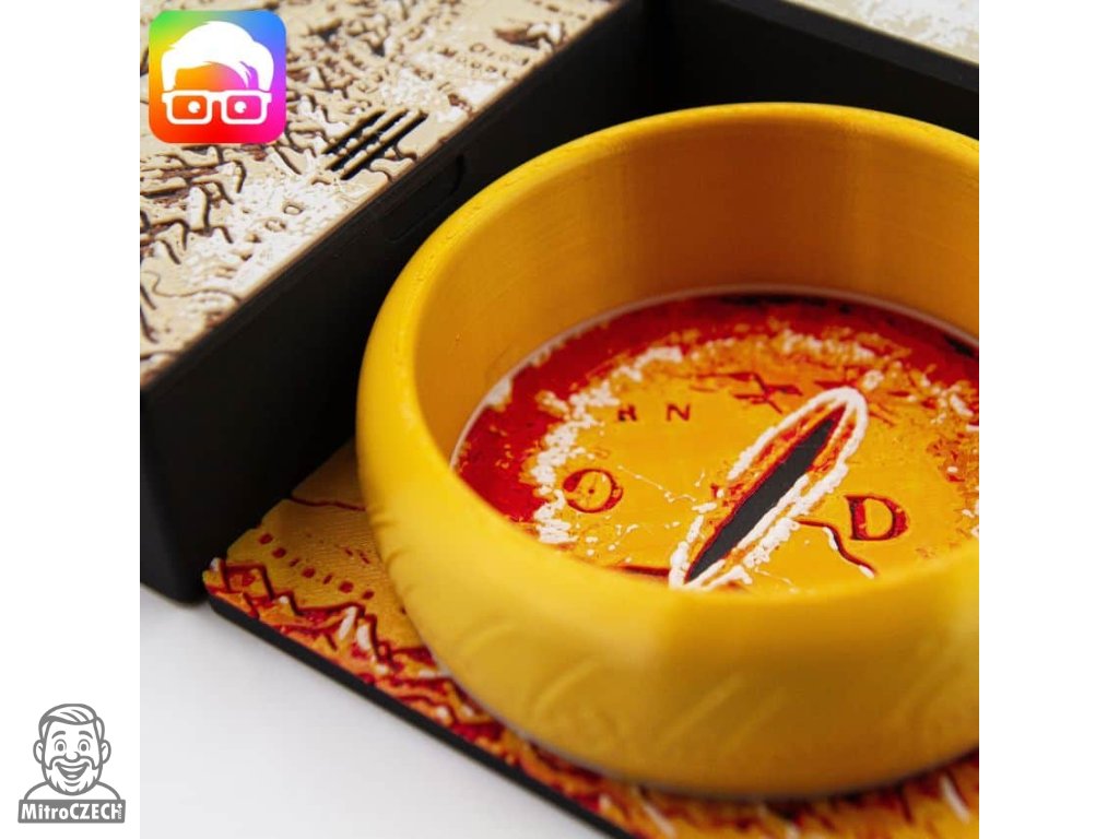 - Zlatý prsten se Sauronovým okem jako miska na mince